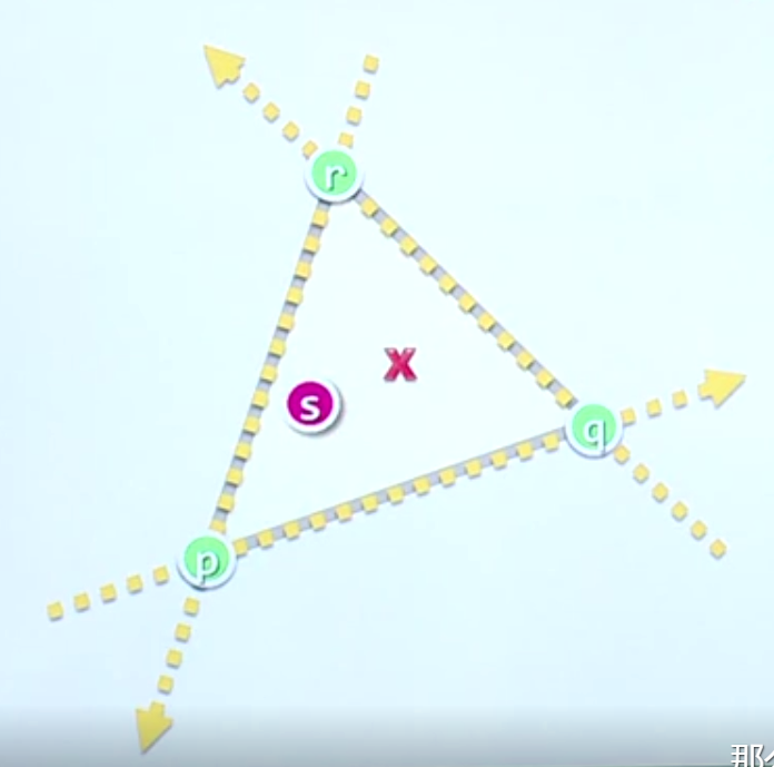 实现Triangle.contains(Point)可用To-Left Test方法。此方法将三角形三个点按照逆时针首尾相连的到三条直线,然后判断对于这三条直线来说,是否Point全在直线左侧。